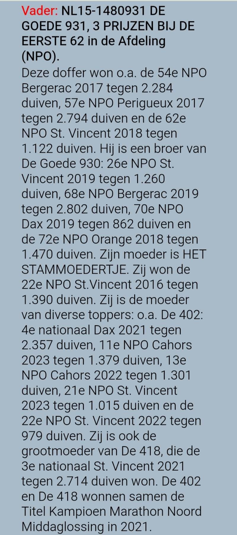 Leen duiven Hendrie Selder