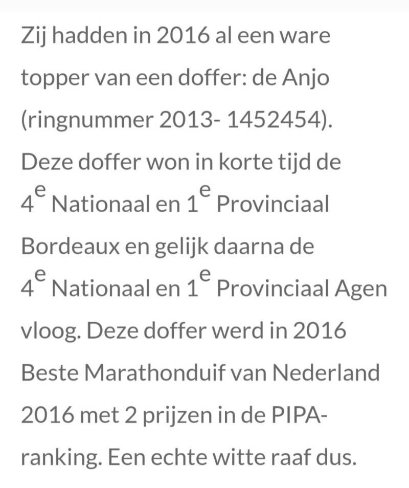 De Anjo lijn van John Vullers en zoon uit Roggel. Via Hendrie Selder en Paul Marcus.