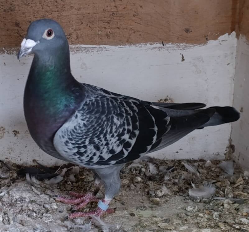 # Later in het seizoen mag dit late Doffertje een ronde doen. De Blauwe Sproetkop NL25-1160813 geschonken gekregen van Jaco van Nieuwamerongen. Moeder is een dochter van Carteus Giant.